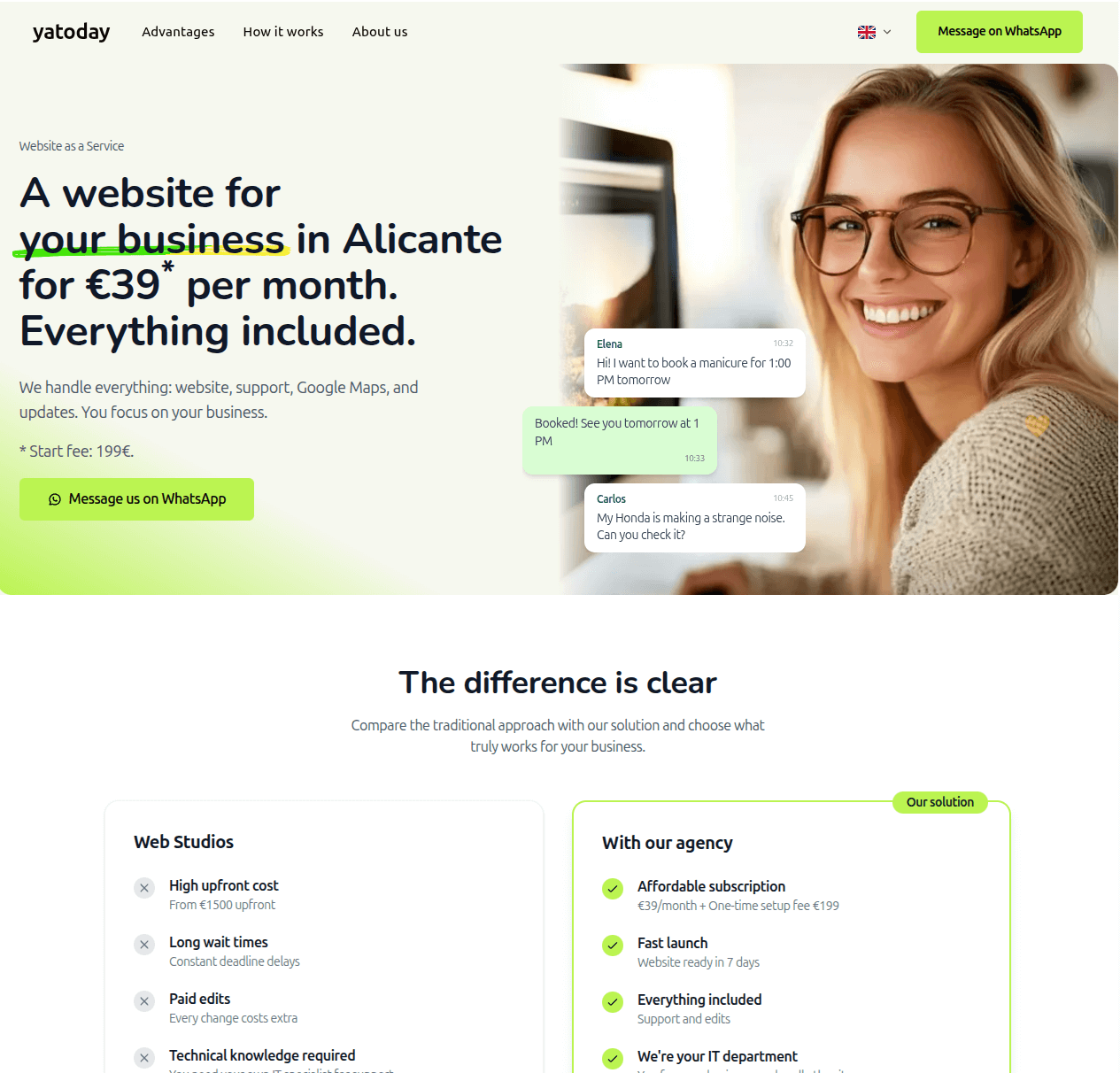 A platform for rapid website launch for local businesses: salons, auto services, clinics, cafes, professional services. The site loads instantly, requires no technical attention from the client, and automatically receives all platform improvements.